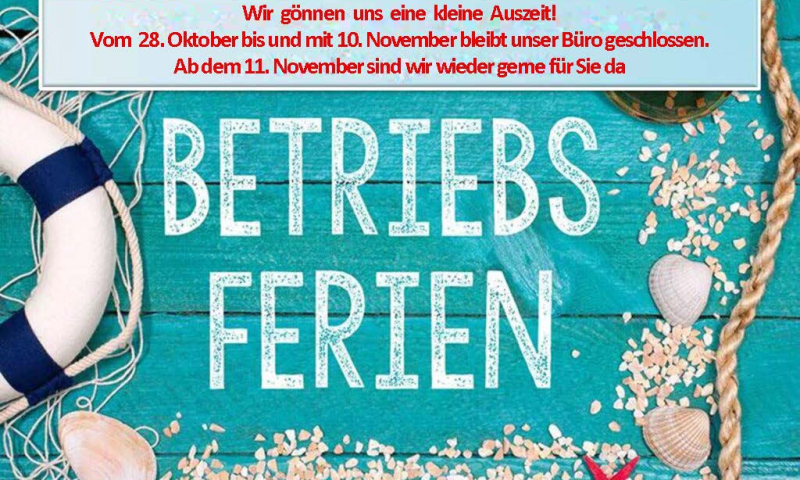 Deshalb bleibt unser Büro vom 28. Oktober bis und mit 10. November geschlossen.